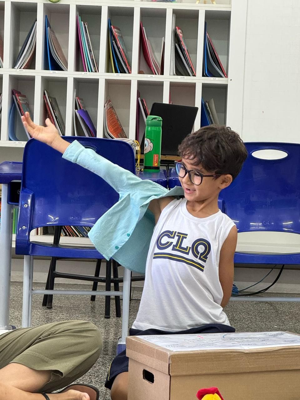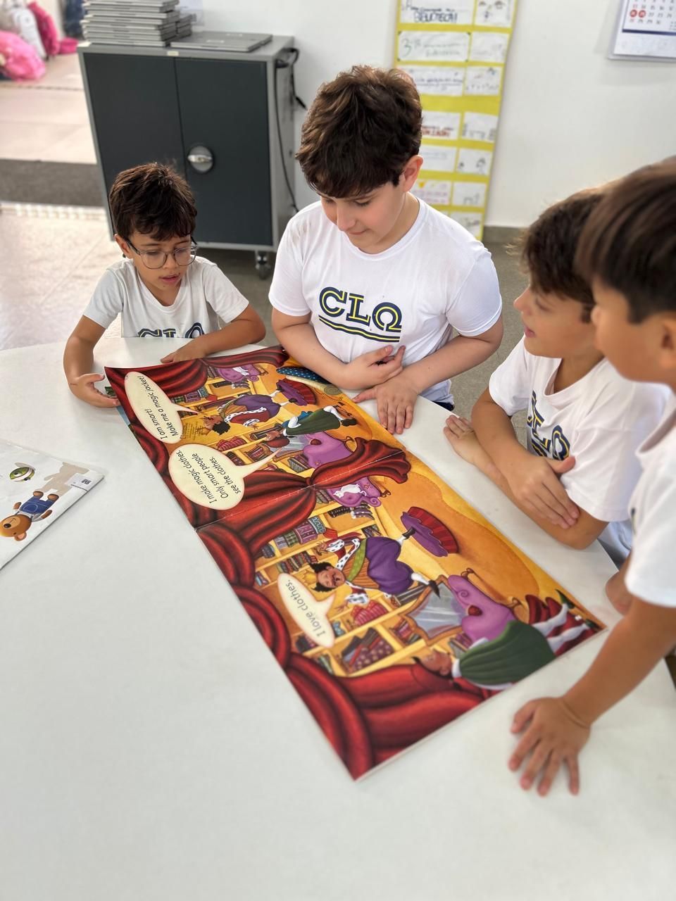 No CLQ+, os pequenos do G1 e G2 participaram da atividade “Tiny Tales”, com histórias em inglês contadas com teatro, fantoches e músicas. Uma vivência lúdica e encantadora, que cultiva o gosto pela leitura desde cedo.