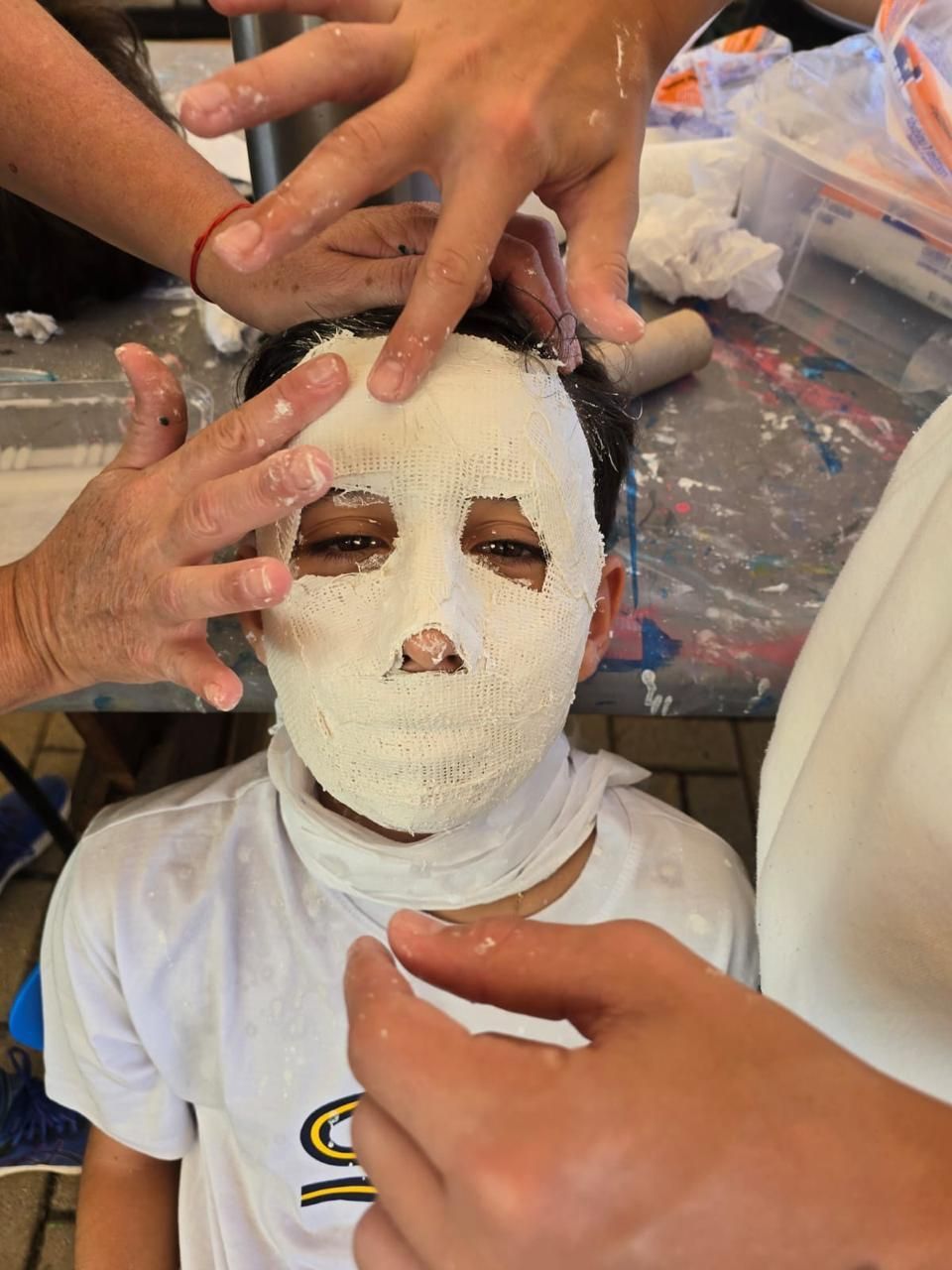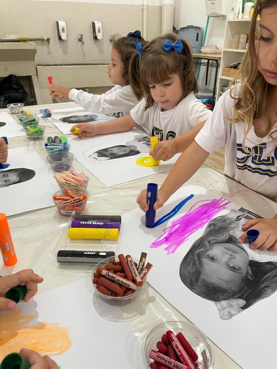 Alunos observaram suas características físicas e criaram autorretratos artísticos com pintura e cenário.
