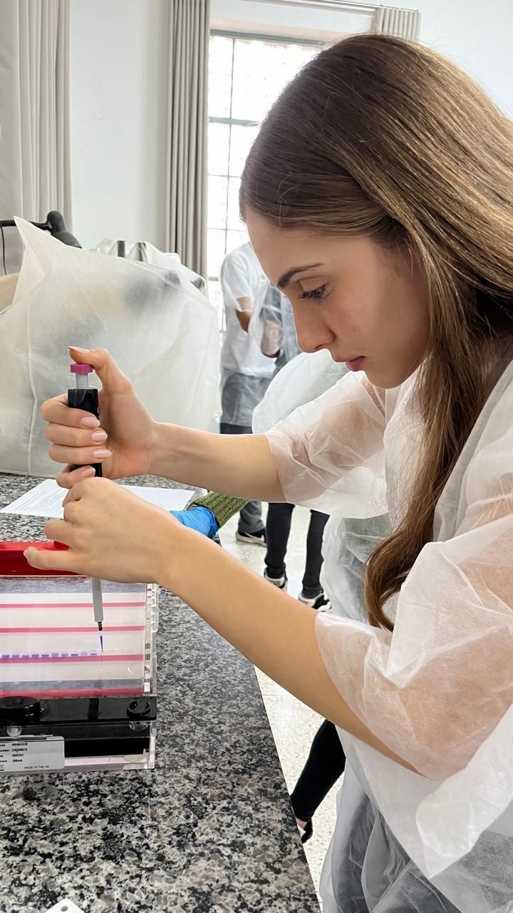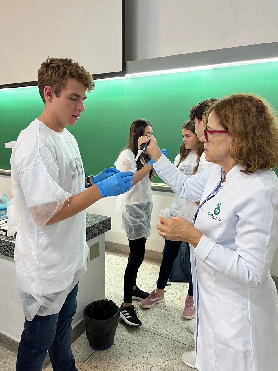 Em visitas aos laboratórios da ESALQ e CENA/USP, os alunos do Ensino Médio participaram de aulas práticas com Prof. Luiz Lehmann sobre técnicas como PCR e extração de DNA, ampliando a compreensão da biotecnologia, além de ouvir depoimentos de universitários sobre a vida e pesquisa científica.