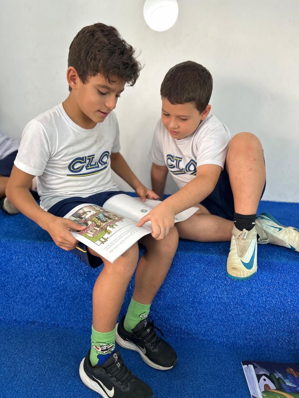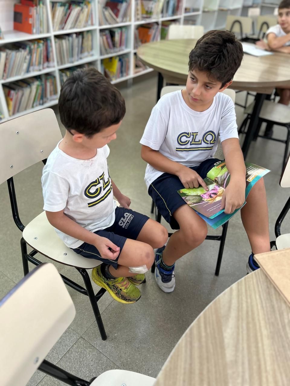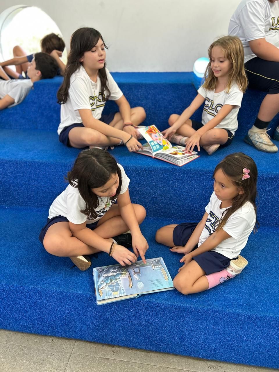 Como parte do Abril Literário, alunos do 5º ano se tornaram “leitores-companheiros” para as turmas do 1º ano. Um momento emocionante de troca, carinho e incentivo à leitura.
