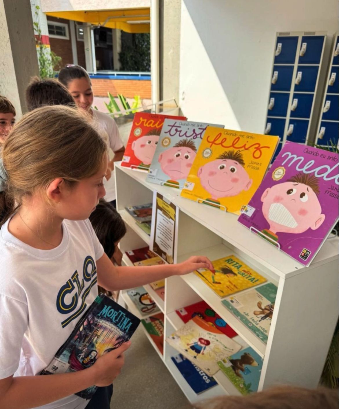 Todos os meses, a Biblioteca e os professores de Língua Portuguesa selecionam livros temáticos. Em abril, o foco foram as emoções. A proposta já movimenta sugestões de novos temas pelos alunos.