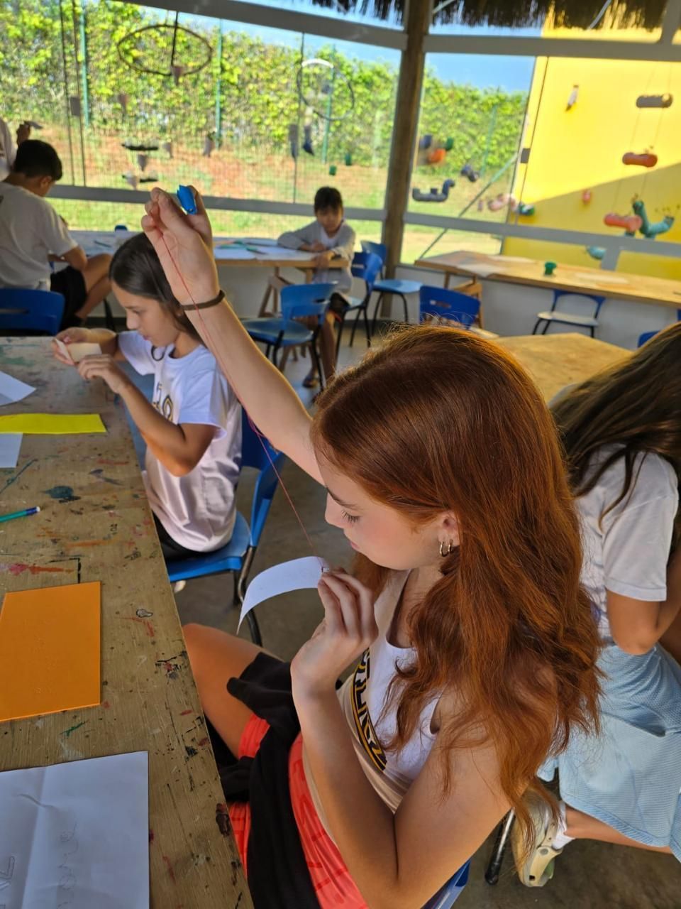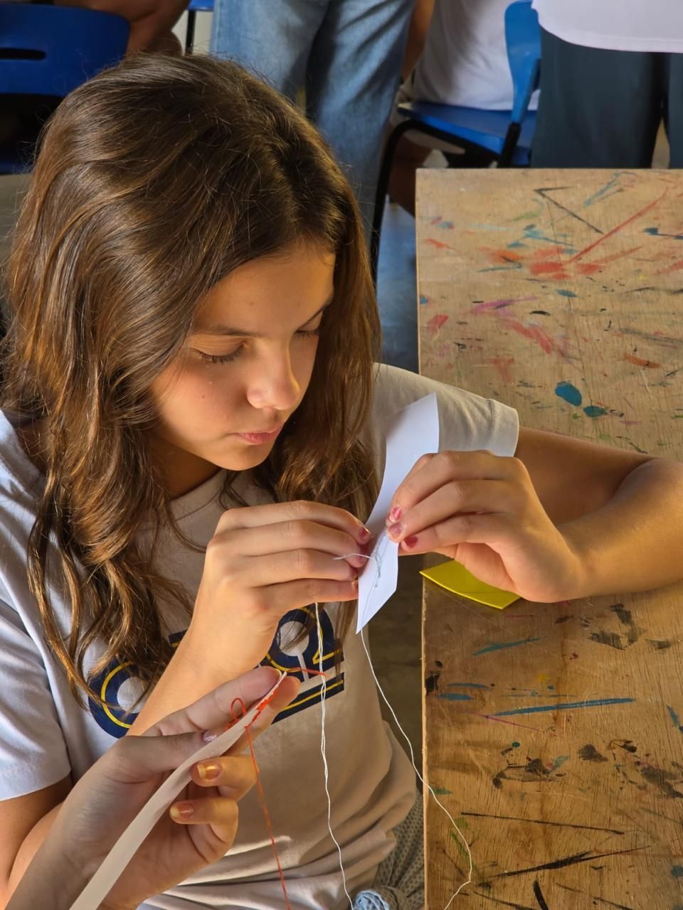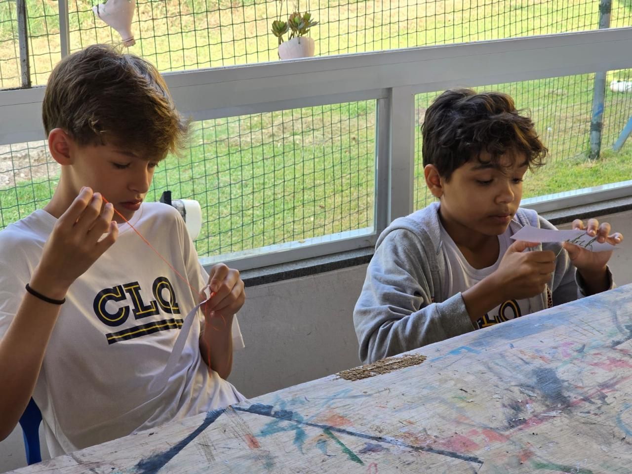 Destaques para atividades manuais: o tear rabo de gato; a criação de brinquedos pedagógicos para o Centro de Reabilitação; máscaras autorais do teatro e os bordados foram propostas experienciadas pelos alunos no Maker do CLQ.