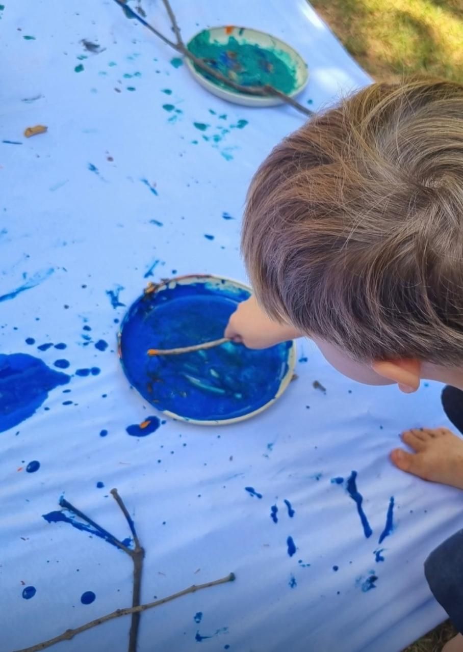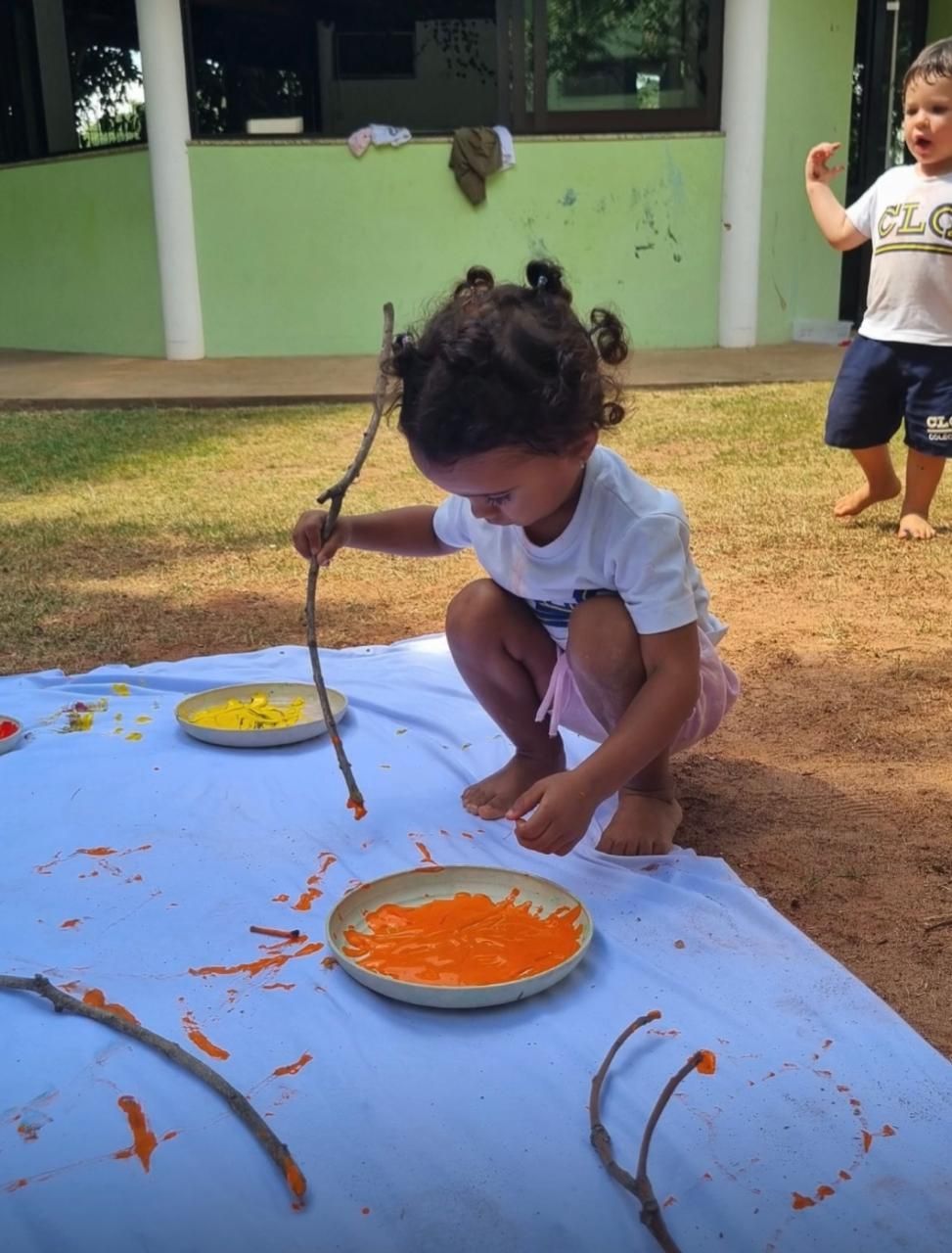 Atividades sensoriais promoveram coordenação motora e criatividade usando elementos naturais e materiais diversos.
