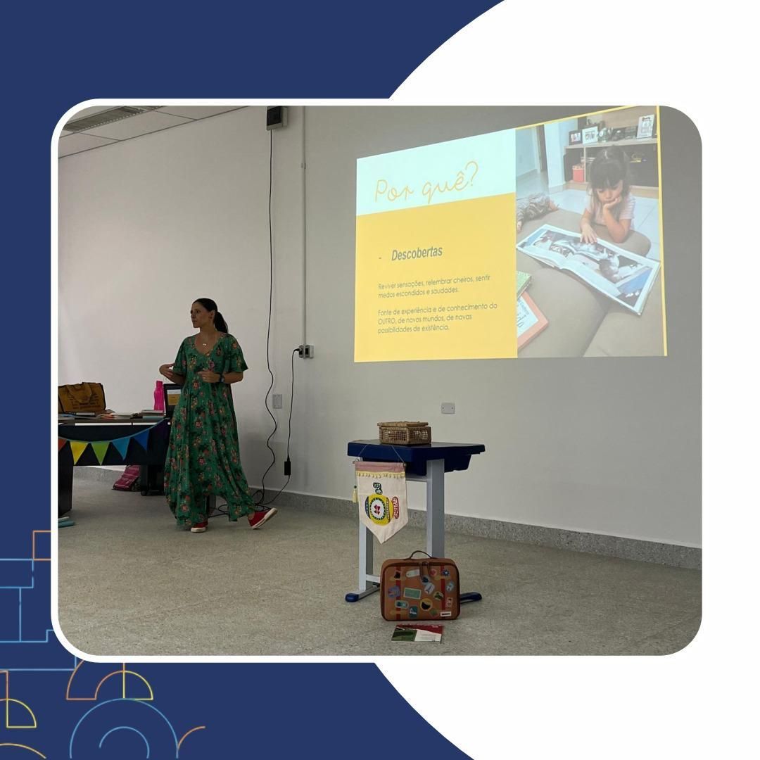 A educadora Nina Brondi visitou a Unidade Água Seca para um trabalho de Sensibilização Literária com a equipe docente, promovendo o amor pelos livros. “A literatura é uma possibilidade de encontrar palavras e sensações que nos permitem elaborar o passado, o presente e até o futuro.”